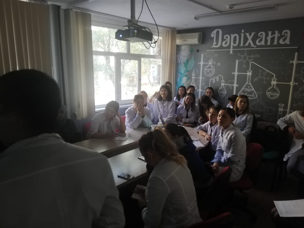 На заседание кафедры по утверждению темы и научных руководителей приняли участие профессор Шопабаева А.Р., PhD Жакипбеков К.С., доценты кафедры Каюпова Ф., Дюсембинова Г.А.,а также профессор кафедры фармацевтической технологии Омарова Р.А., доцент Капсалямова Э.Н., и профессора кафедры фармацевтической и токсикологической химии и фармакогнозии и ботаники Саякова Г.М., Бошкаева А.К и ведущие специалисты кафедры ОУЭФ и КФ.