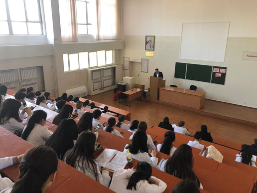 13 ноября 2019 года в 14.00 в (7 ауд.корпусе ауд. №9), в рамках программы «SANALY URPAQ» для студентов 1-го курса специальности «Технология фармацевтического производства» Школы фармации был проведен кураторский час на тему «Меры противодействия коррупции» с приглашенным адвокатом Алматинской городской коллегии Адвокатов г.Алматы господином Амитовым М.Ш., и с участием преподавателей кафедры «Инженерных дисциплин».