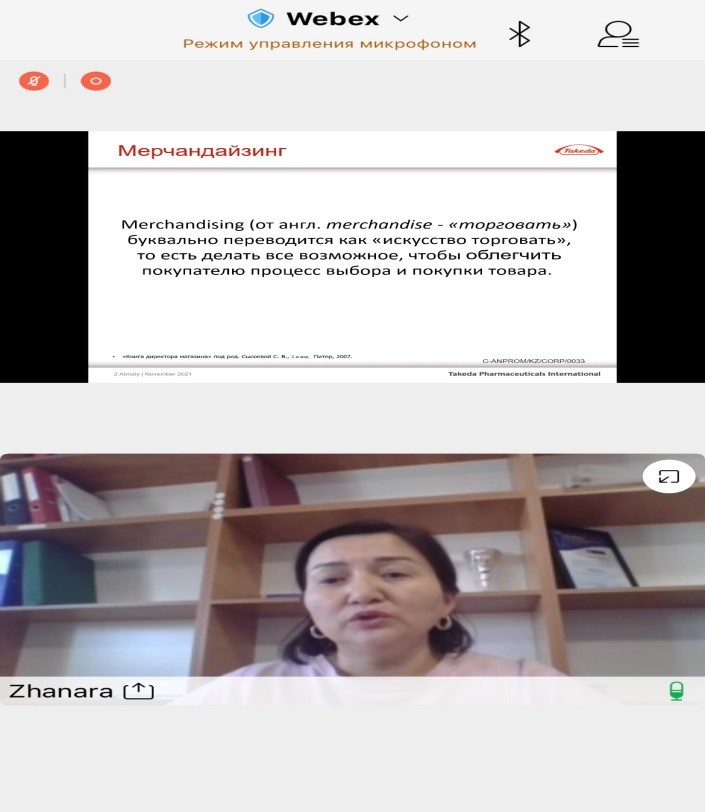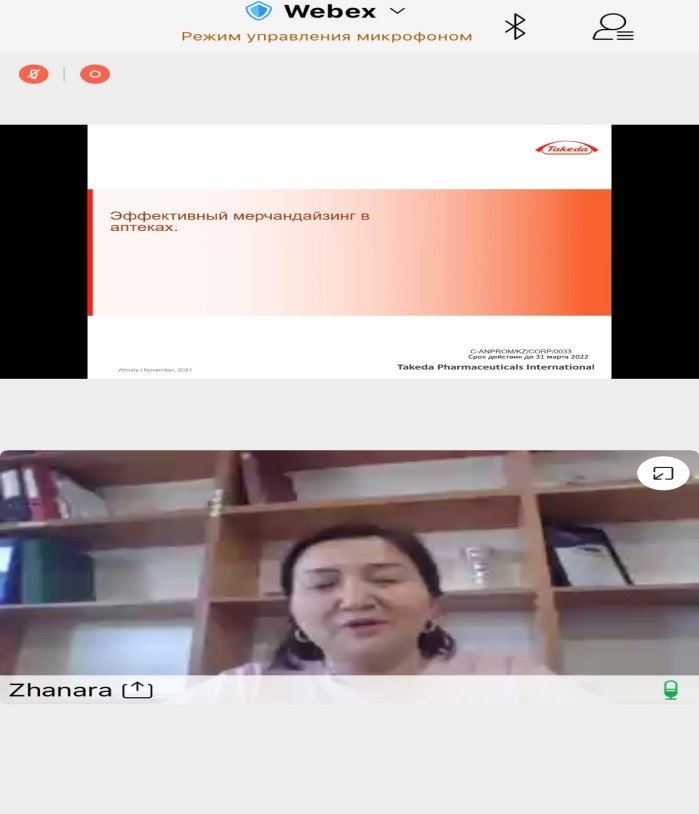 11.11.2021 г. Куламбаева Ж. – Групп Бренд Менеджер Компании Такеда в Казахстане. Провела мастер-класс на тему: «Мерчендайзинг в аптеках – эффективное воздействие на покупателя».