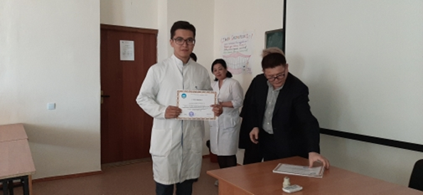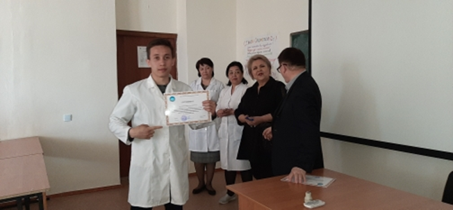 Во исполнении Стратегического плана Казахского национального медицинского университета им. С.Д. Асфендиярова, студенты 4-го курса специальности 5В110300 – «Фармация» Школы фармации прошли академическую мобильность по прохождению производственной практики «Управление и экономика фармации» в количестве 75 часов (7,5 часов в день) на базе кафедры фармацевтических дисциплин АО «Медицинский университет Астана» с 06.05.2019 г. по 18.05.2019 г. Производственная практика проходила в сети аптек ТОО «Биосфера». В рамках реализации академической мобильности студенты приняли активное участие в цикле лекций и мастер классов д.фарм.н., профессора кафедры фармацевтических дисциплин МУА Арыстанова Ж.М. по теме: «Современные концепции фармацевтической помощи» с получением сертификата.