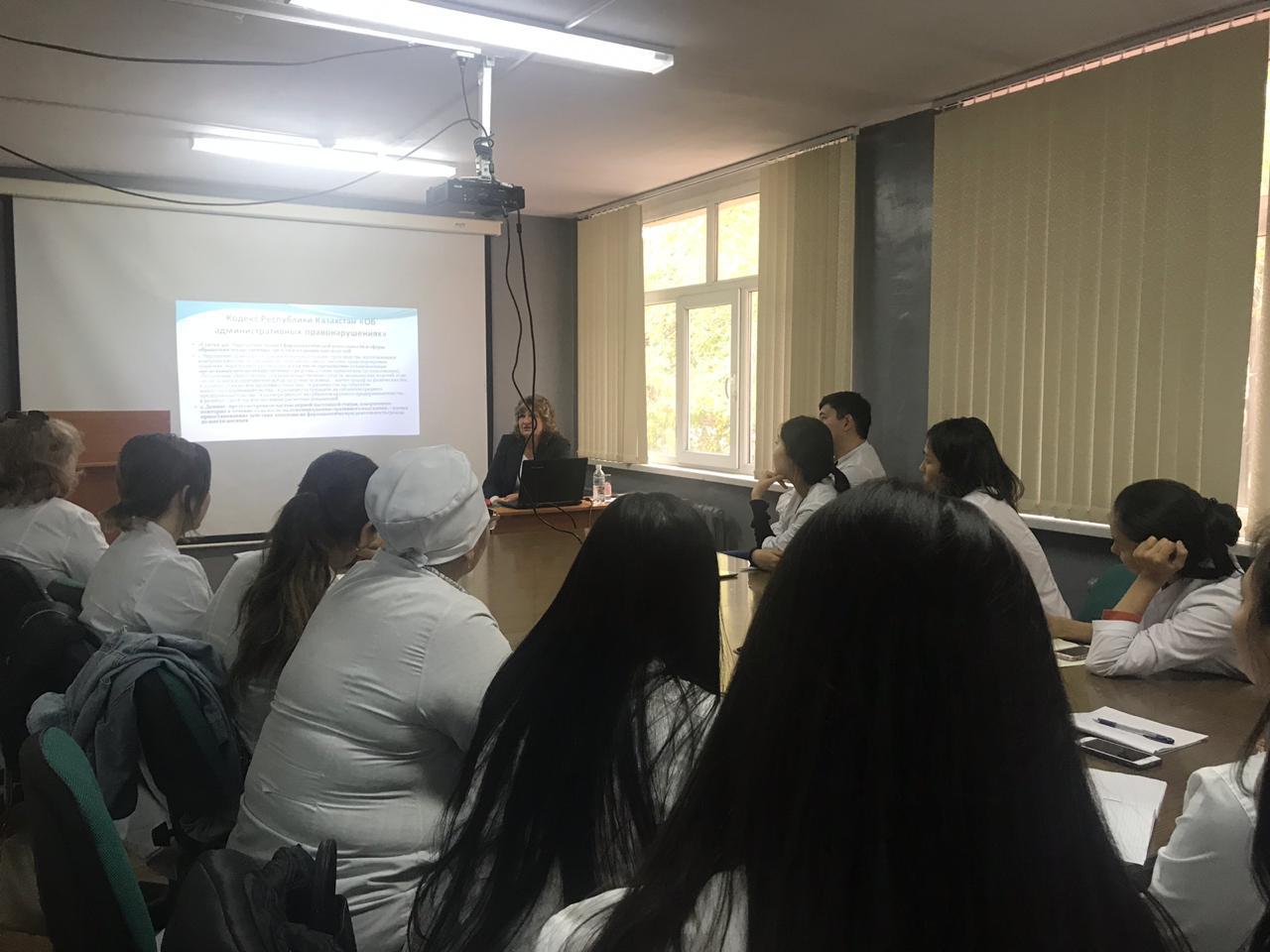 В Школе Фармации НАО «Казахский Национальный Медицинский Университет им. Асфендиярова» 9 сентября 2019 года был проведен обучающий семинар Президентом Ассоциации поддержки и развития фармацевтической деятельности РК (далее- АПРФД РК) Мариной Ивановной Дурмановой с группой магистрантов на тему «Законодательство Республики Казахстан в сфере обращения лекарственных средств и медицинских изделий. Рациональное применение лекарственных средств». Она ознакомила с дополнениями и изменениями в НПА (нормативно – правовой акт) фармацевтической отрасли: