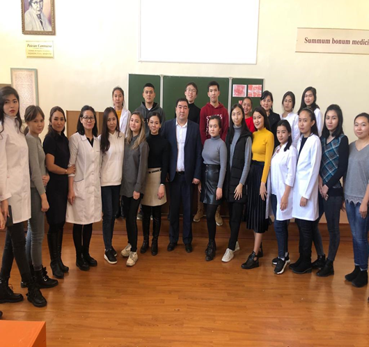13 ноября 2019 года в 14.00 в (7 ауд.корпусе ауд. №9), в рамках программы «SANALY URPAQ» для студентов 1-го курса специальности «Технология фармацевтического производства» Школы фармации был проведен кураторский час на тему «Меры противодействия коррупции» с приглашенным адвокатом Алматинской городской коллегии Адвокатов г.Алматы господином Амитовым М.Ш., и с участием преподавателей кафедры «Инженерных дисциплин».