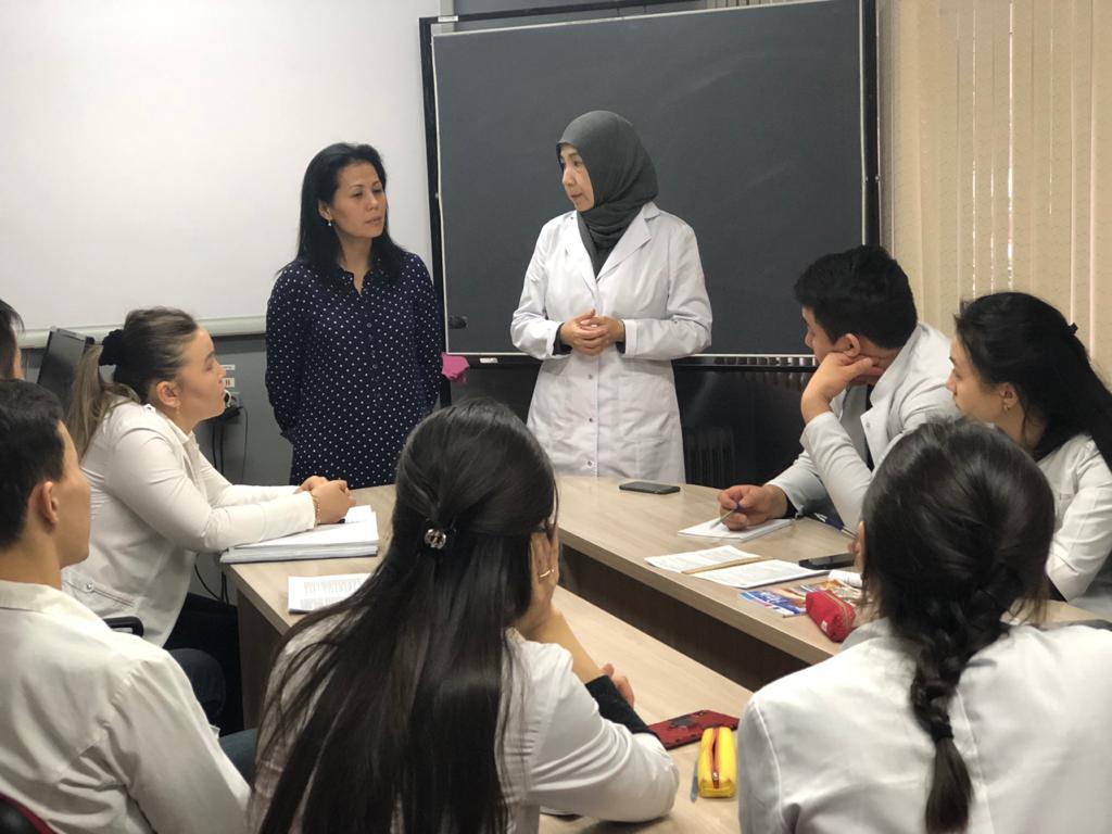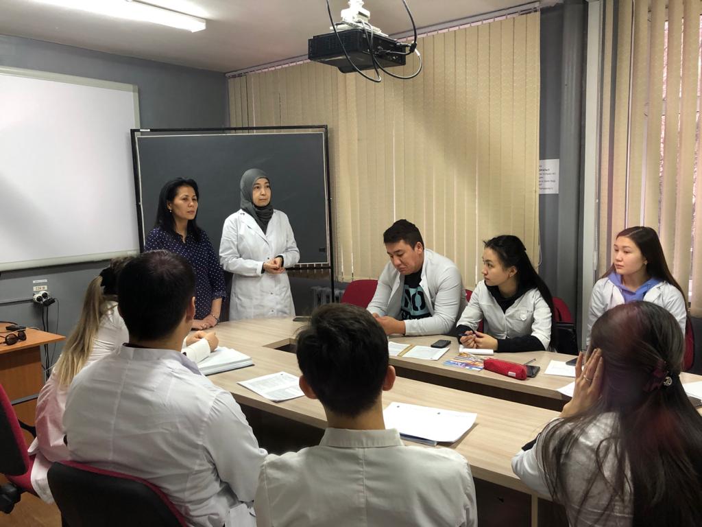 6.03.2020г. в рамках реализации дуального обучения на кафедре организации, управления и экономики фармации и клинической фармации по дисциплине «Фармацевтическая логистика» для студентов 5 курса фармацевтического факультета была проведена очередная лекция. Лекторами выступили: представитель фармацевтической компании «Орион», коммерческий менеджер Алшынбаева Асель Маратовна и доцент кафедры организации, управления и экономики фармации и клинической фармации, к.фарм.н. Дюсембинова Гаухар Алпысбаевна.