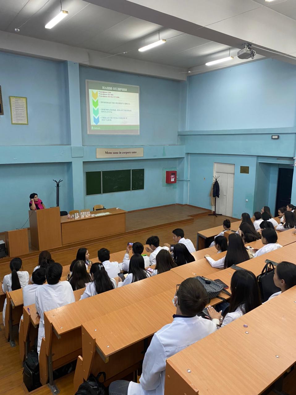 В корпусе № 7, аудитории № 7 менеджер по фармаконадзору Ербосын Арай провела мастер-класс для студентов 2 курса «Технология фармацевтического производства» 13.10.2022 в 14:30 (ТФП21-47, ТФП21-45, ТФП21-55, ТФП21-38, ТФП21-45, ТФП21-56, ТФП21-66, ТФП21-37).