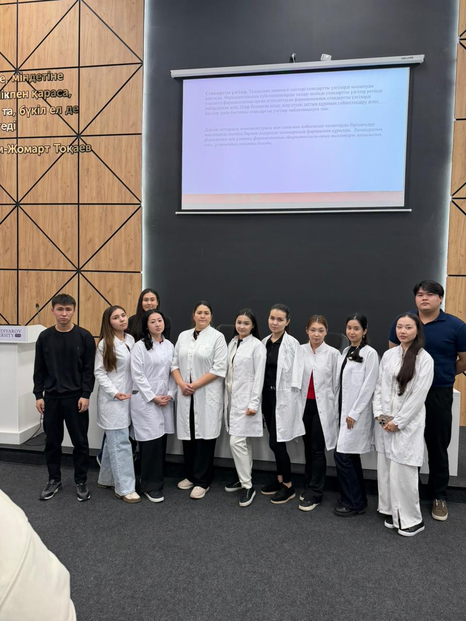 В Казахском национальном медицинском университете имени С.Д. Асфендиярова 18 марта 2026 года в рамках прохождения производственной практики для студентов 4 курса Школы фармации PhD доктор Киекбаева Лашын Нуртасовна провела лекционное занятие на тему: «Обоснование выбора методов контроля качества лекарственных средств».