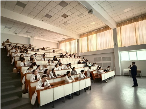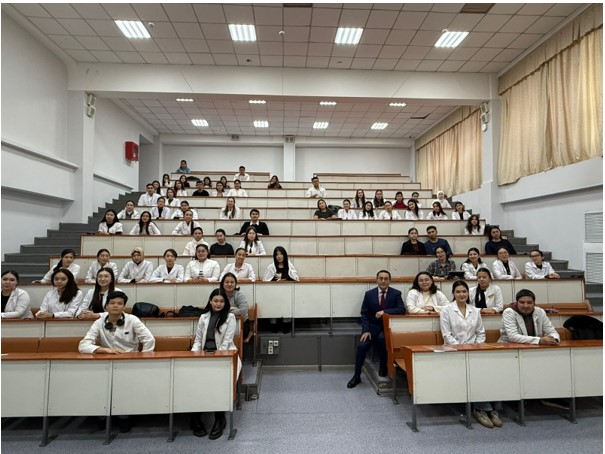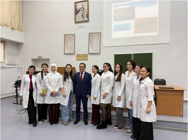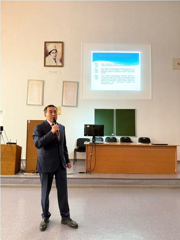 Отдельное внимание Еркен Каримович уделил теме фармаконадзора как важнейшего инструмента мониторинга безопасности лекарственных препаратов. Студенты получили представление о механизмах сбора и анализа сообщений о побочных реакциях, роли медицинских и фармацевтических работников в системе фармаконадзора, а также значении своевременного выявления рисков для здоровья пациентов.