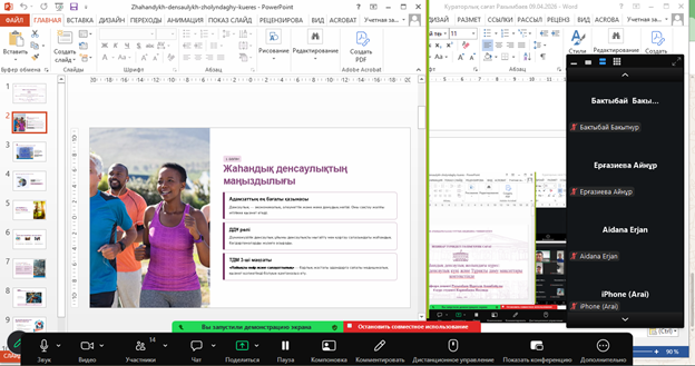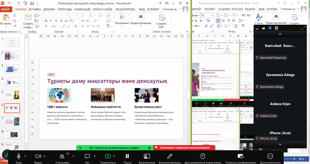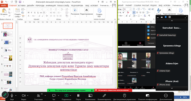 9 апреля 2026 года для студентов 4 курса образовательной программы «Технология фармацевтического производства» Школы фармации Казахского национального медицинского университета имени С.Д. Асфендиярова (группы ФӨТ 22-017, ФӨТ 22-018) был проведён кураторский час.
