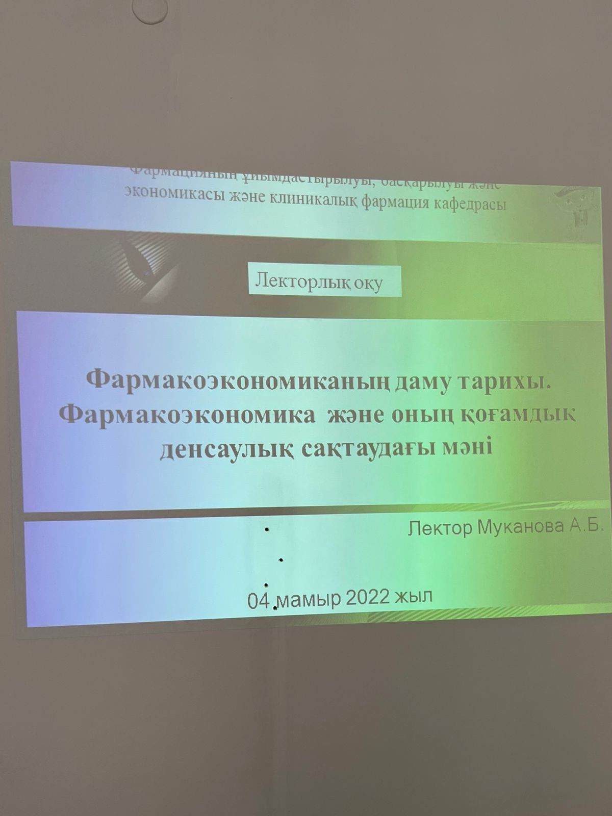 04.05.2022 жылы сағат 11:00 С.Ж. Асфендияров ат. Қазақ ұлттық медицина университетінің “Желтоқсан 37а” корпусында фармацияның ұйымдастырылуы, басқарылуы және экономикасы және клиникалық фармация кафедрасының лекторы Муканова Арайлым Бейбітқызының дәрісі өткізілді.