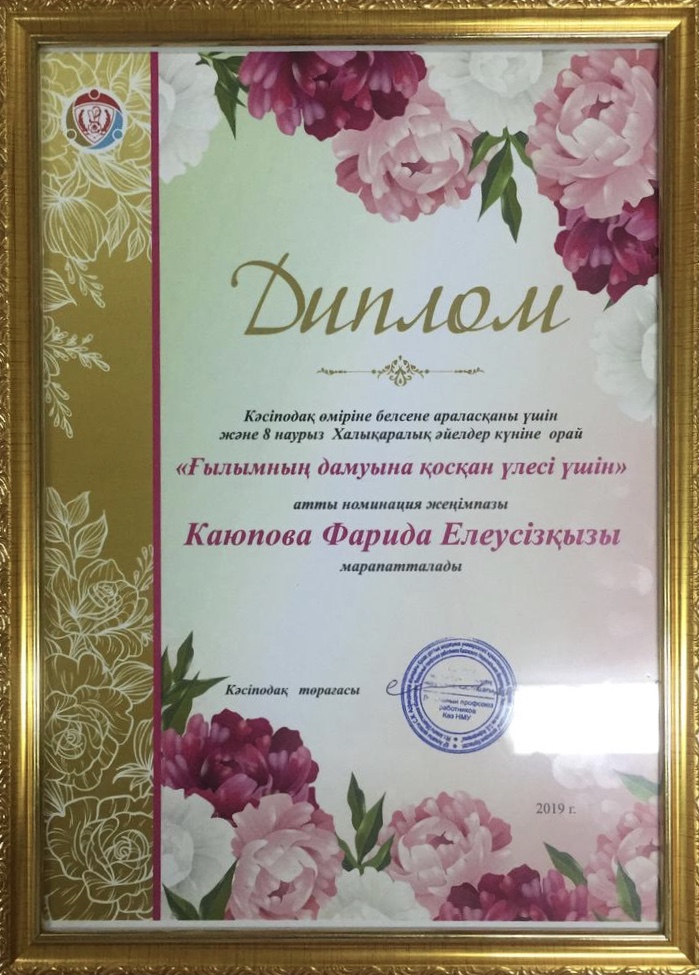 Кафедра организации, управления и экономики фармации и клинической фармации поздравляет к.фарм.н., доцента кафедры Каюпову Фариды Елеусизовну с награждением ко дню 8 – марта – Международному Женскому Дню в номинации «За вклад в развитие науки».