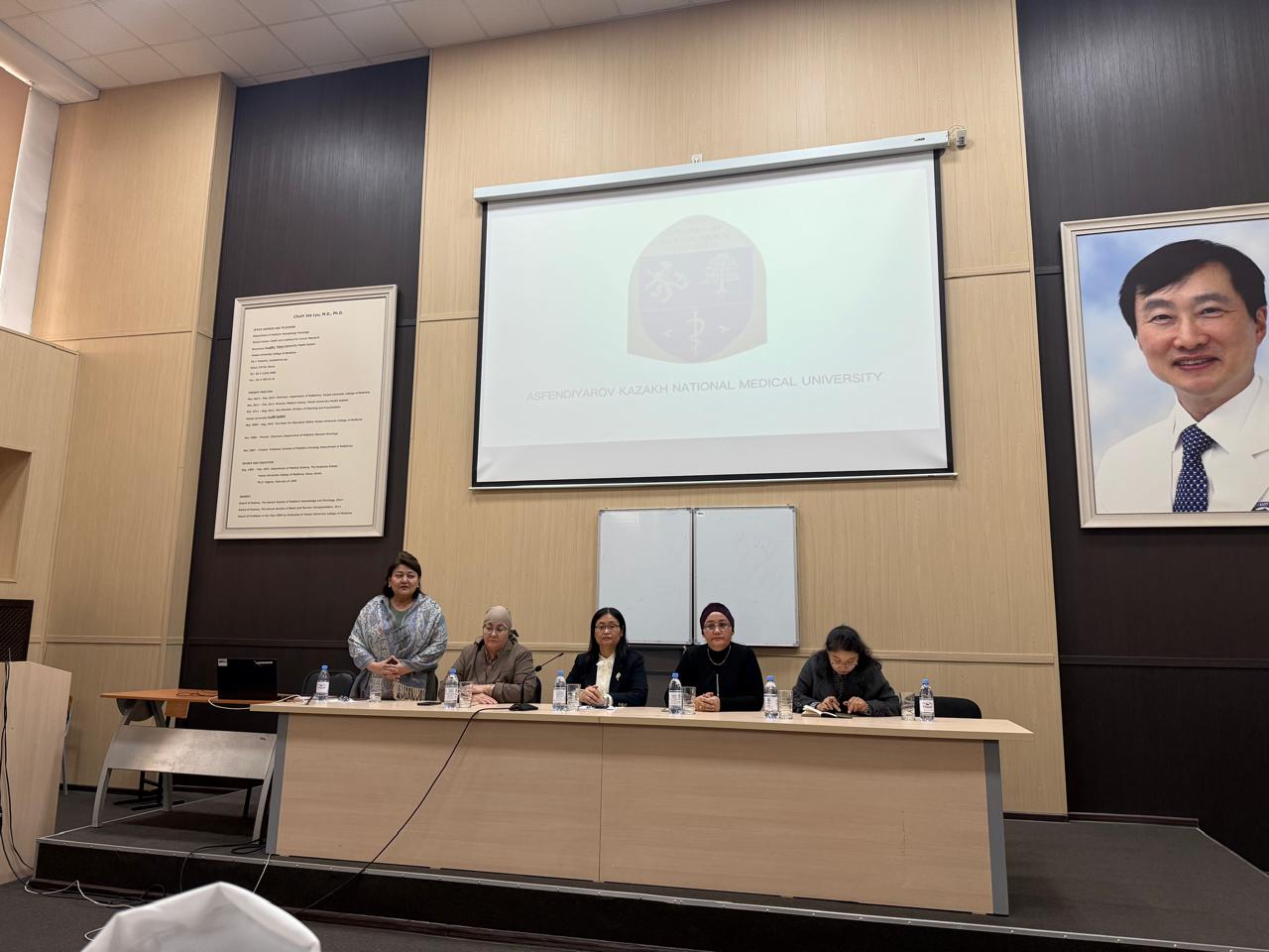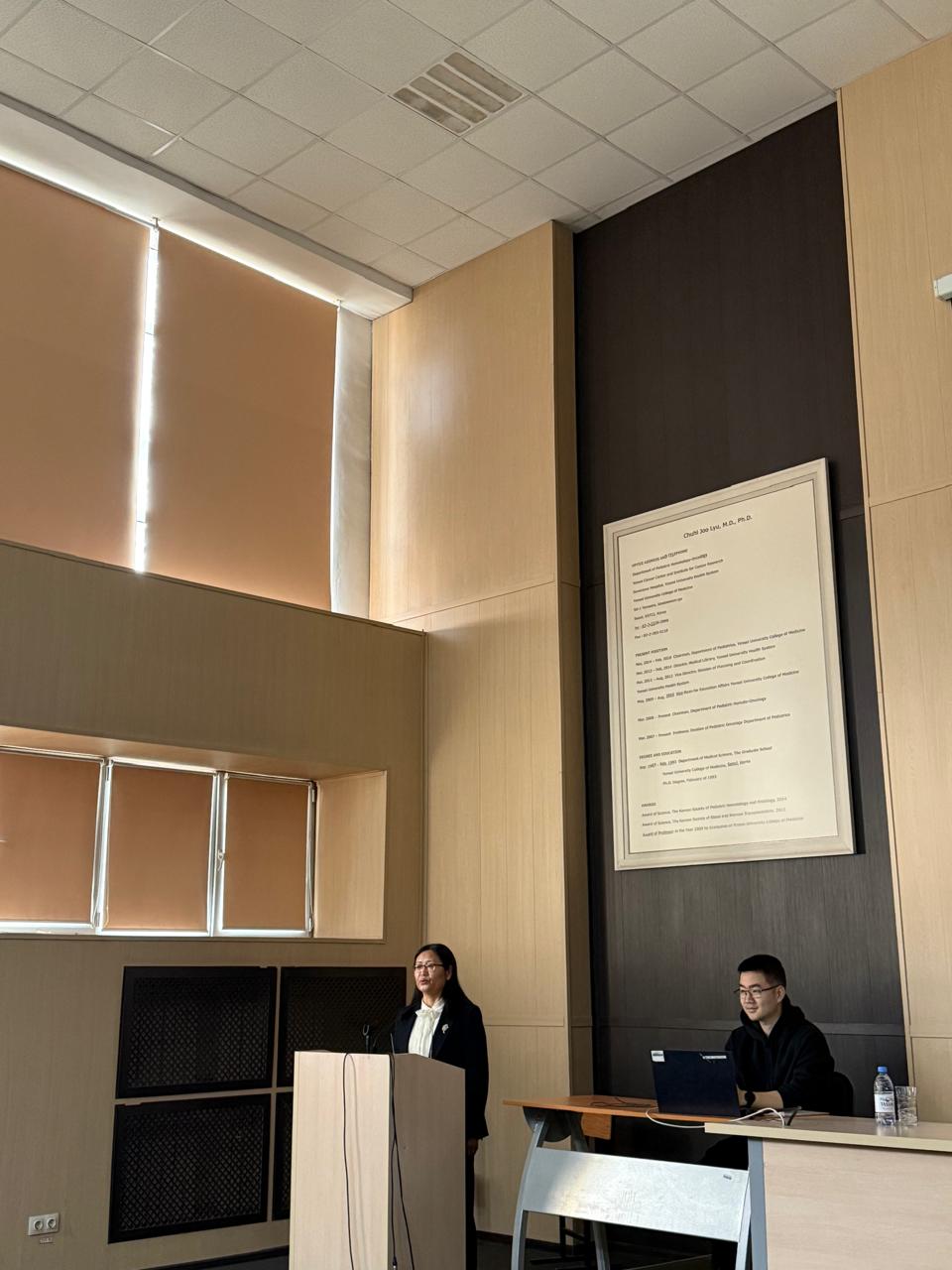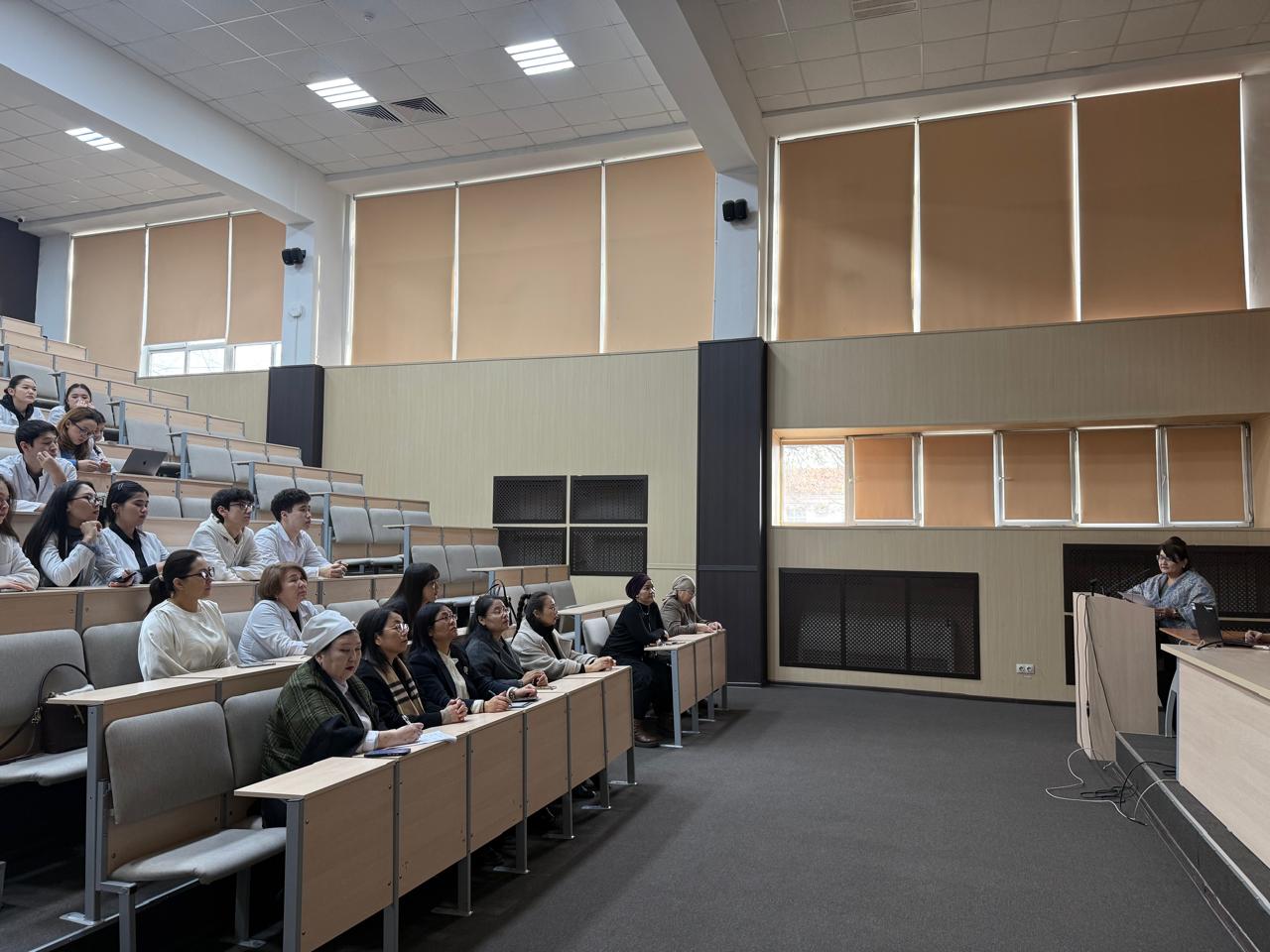 During a meeting with the teaching staff, students, master’s students and doctoral students of the School of Pharmacy, the guests gave a presentation on the college. In her presentation, Associate Professor Kozhanova Kaldanai Korzhaovna, Head of the Department of Engineering Disciplines at the School of Pharmacy, spoke about the departments of the School of Pharmacy and introduced the academic, scientific and pedagogical activities and educational programmes offered at the bachelor’s, master’s and and doctoral programmes.