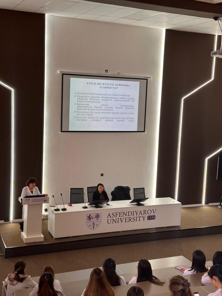 On January 20, 2026, a meeting was held at Asfendiyarov Kazakh National Medical University with 3rd- and 4th-year students of the educational program “Pharmaceutical Manufacturing Technology (PMT)”. Within the framework of the meeting, a briefing was conducted on the completion of industrial internship for the course “Industrial Technology of Medicines.”