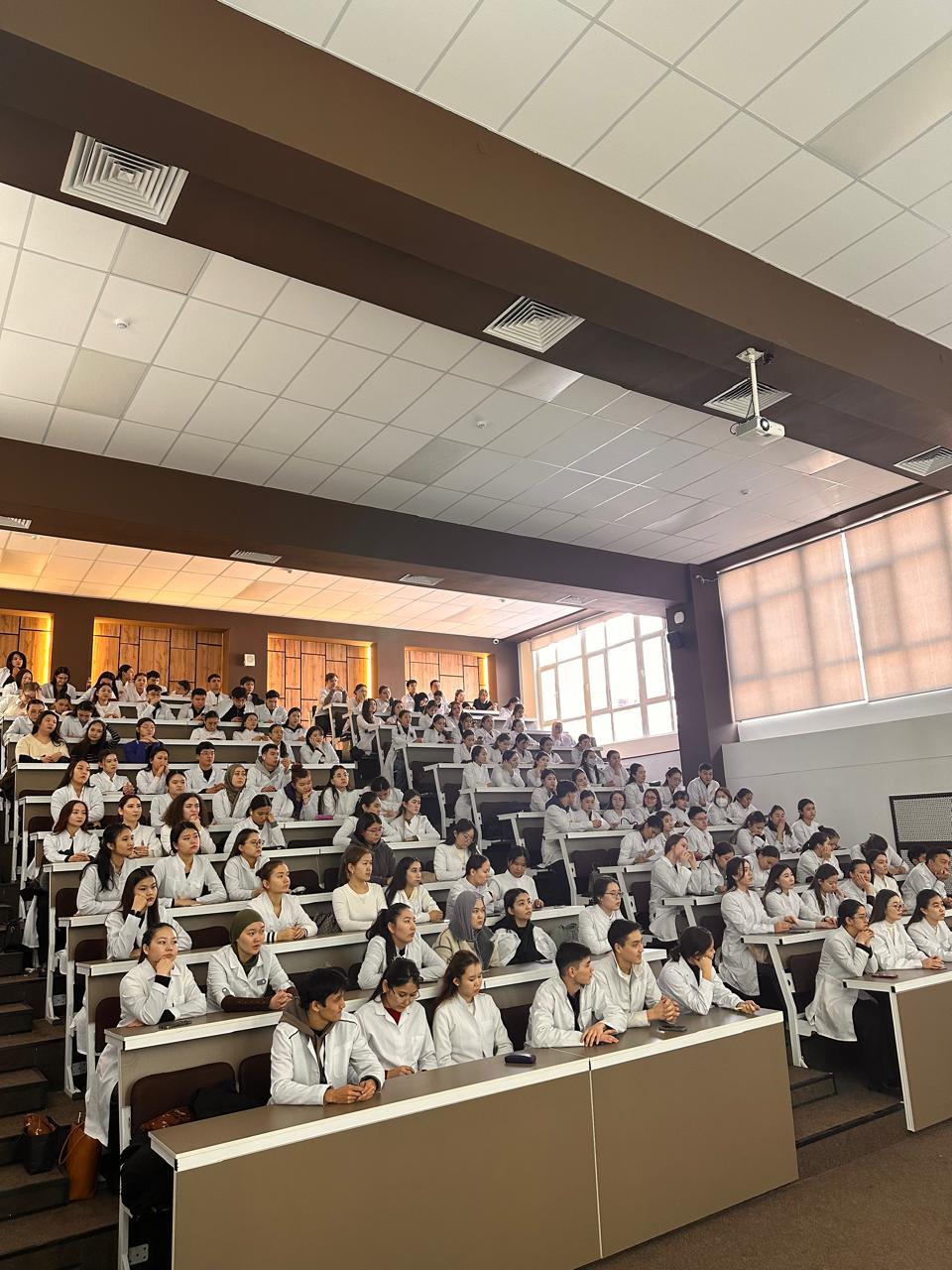 On January 20, 2026, a meeting was held at Asfendiyarov Kazakh National Medical University with 3rd- and 4th-year students of the educational program “Pharmaceutical Manufacturing Technology (PMT)”. Within the framework of the meeting, a briefing was conducted on the completion of industrial internship for the course “Industrial Technology of Medicines.”