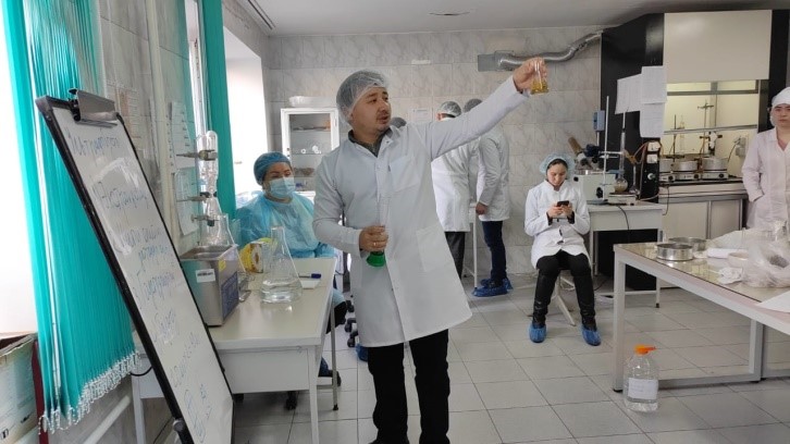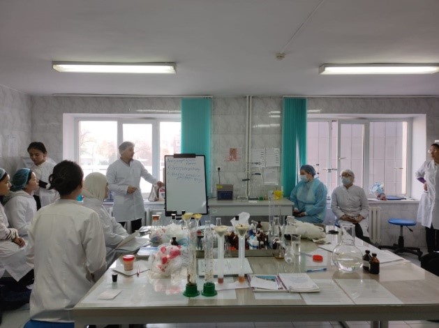 As part of the pre-graduation practice “Design and production of medicinal products” for 4th year students in the educational program B072 – Pharmaceutical Production Technology on 03/05/2024 in educational building No. 5, at the Research Institute of Physics and Medicine named after. B. Atchabarova, in the scientific and practical control and analytical laboratory of chemistry and pharmacognosy, a master class was held by PhD doctoral student, assistant of the department Abay Dzholdasovich Masakbaev on the topic: “Ultrasonic extraction.” The master class was attended by teaching staff from the departments of pharmaceutical and toxicological chemistry, pharmacognosy and botany, and 4th year students of the specialty “Pharmaceutical Production Technology”. In practice, students learned to use an ultrasonic device to obtain extracts from medicinal plant materials and learned the theoretical aspects of extraction. The beauty of the ultrasonic extraction method is its compatibility with almost any plant material and solvent.