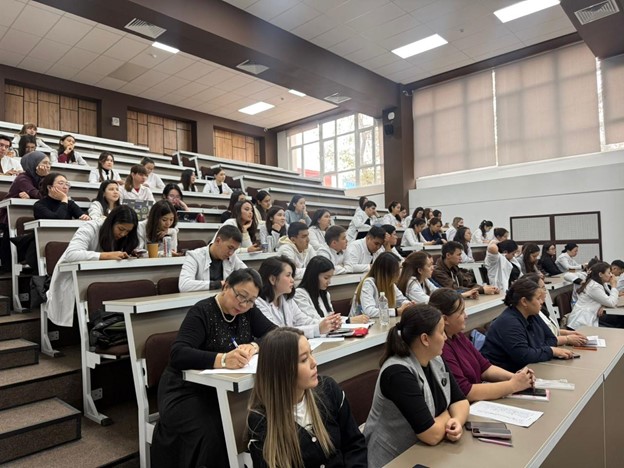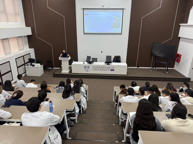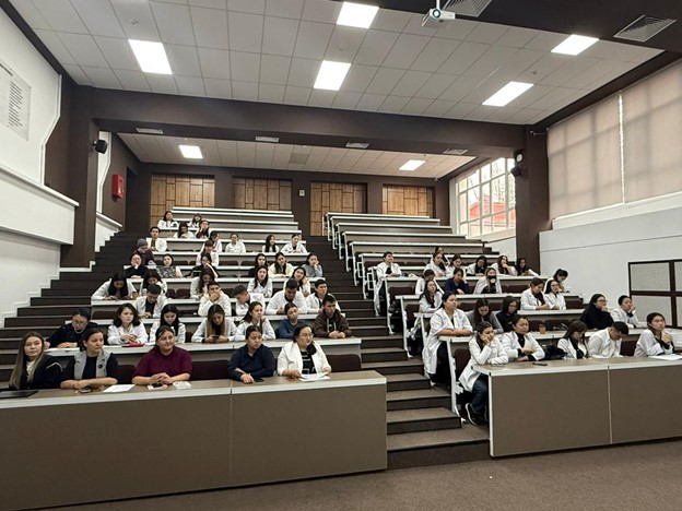 On October 31, 2025, a motivational meeting was held at the S.D. Asfendiyarov Kazakh National Medical University with 4th– and 5th-year students of the School of Pharmacy. The event’s guest of honor was university graduate and Master of Business Administration (MBA), Daniyar Jankulov.