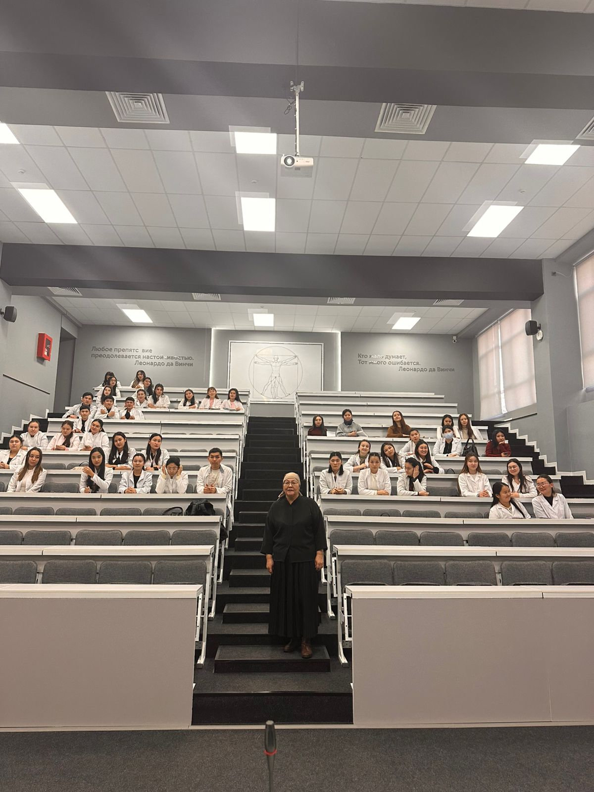 С.Ж. Асфендияров атындағы Қазақ ұлттық медицина университетінде 2025 жылғы 17 қарашада Фармацевтикалық технология кафедрасының меңгерушісі, профессор Устенова Г.О. 3 курс студенттері үшін өндірістік тәжірибе аясында лекция өткізді. Сабақтың тақырыбы: «Субстанциялар мен өсімдік текті дәрілік заттардың заманауи технологиялары».