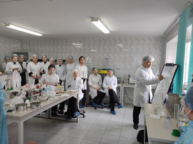 В072 – фармацевтикалық өндіріс технологиясы білім беру бағдарламасы бойынша 4 курс студенттеріне арналған “дәрілік препараттарды жобалау және өндіру” диплом алды практикасы шеңберінде 05.03.2024 жылы №5 оқу корпусында, ат. Б. Атчабарова, химия және фармакогнозияның ғылыми-практикалық бақылау-талдау зертханасында PhD докторант, кафедра ассистенті Масакбаев Абай Жолдасұлының “Ультрадыбыстық экстракция” тақырыбында шеберлік сыныбы өтті. Мастер-класқа фармацевтикалық және токсикологиялық химия, фармакогнозия және ботаника кафедрасының ПОҚ, “фармацевтикалық өндіріс технологиясы” мамандығының 4 курс студенттері қатысты. Іс жүзінде студенттер дәрілік өсімдік шикізатынан сығындылар алу үшін ультрадыбыстық аппаратты қолдануды үйренді, экстракцияның теориялық аспектілерін білді. Ультрадыбыстық экстракция әдісінің сұлулығы оның кез-келген өсімдік шикізатымен және еріткішпен үйлесімділігінде.