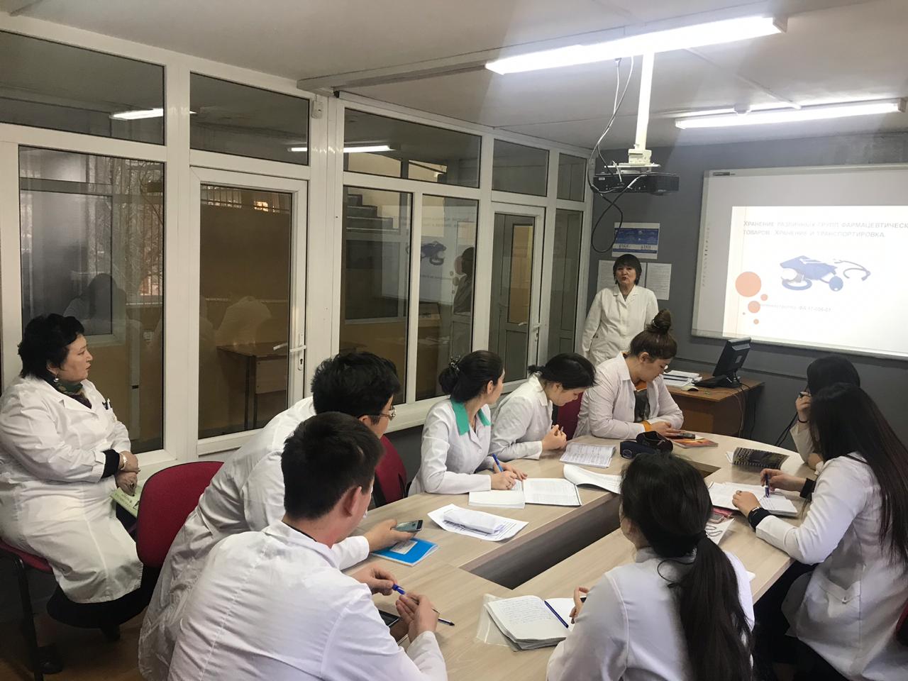 Сабақтың бірінші бөлімінде дәрілік заттардың физика – химиялық қасиеттері бойынша сақталу ерекшеліктерін аудиторияда талқылады. Сабақтың екінші бөлімінде дәрілік заттардың дәріханада қалай сақталатындығы жайында Фармация мектебінің оқу дәріханасында талқыланды.