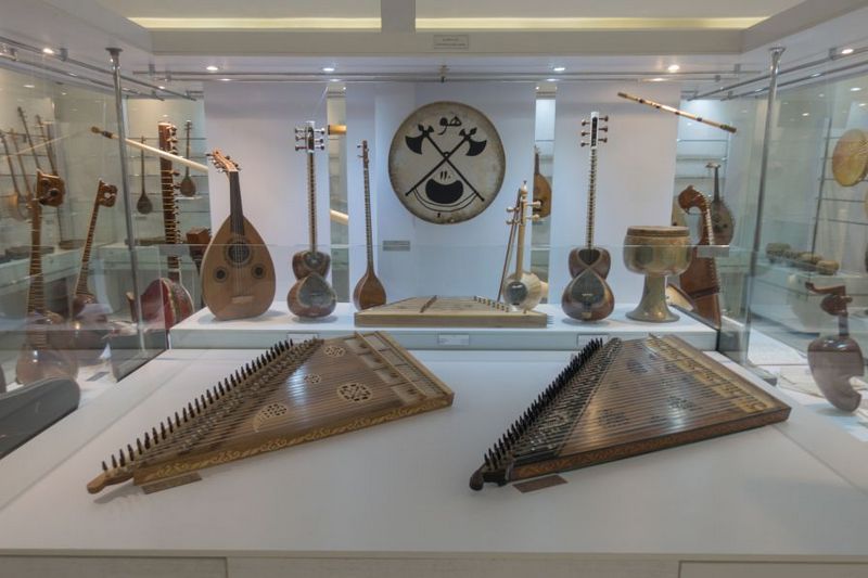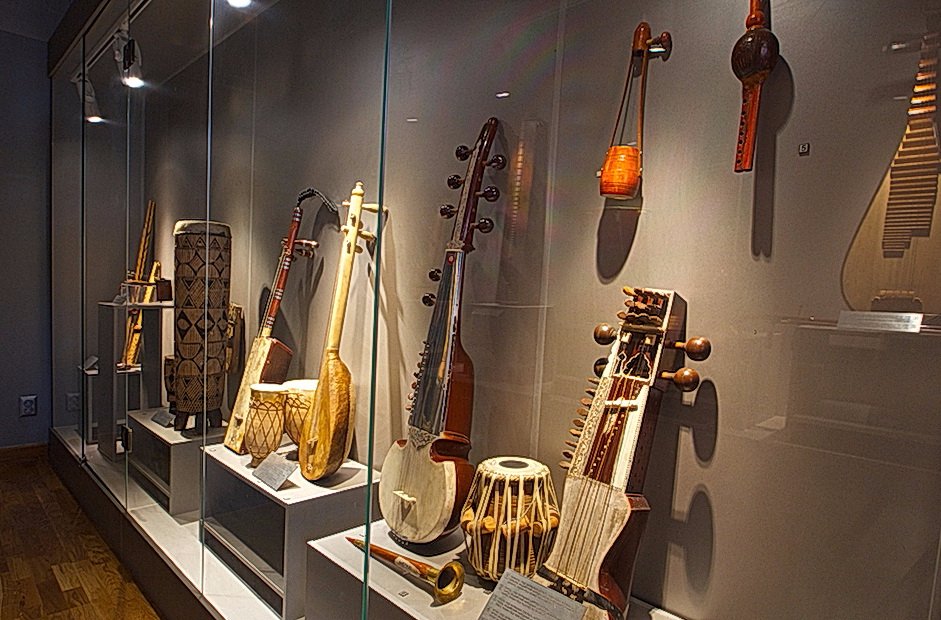 18 ғасырда өмір сүрген бақсы-жырау Жарастың көне нарқобызы, Абайдың үш ішекті домбырасы, Мұрын, Дина, Әбікен, Біржан сал, Махамбет, Жамбылдың домбыралары, аспапшы-шебер Қ.Қасымұлының қобызы, т.б. тарихи мұралар бар. Мұражайда ұлттық аспаптармен қоса, түркі тектес халықтар мен шет ел халықтарының үш жүзден аса музыкалық аспаптары қойылған тұрақты көрме залы жұмыс істейді. Бұл коллекцияларды жинап, сақтау, зерттеу және насихаттау ісімен ғылыми-қор, ғылыми-зертхана және ғылыми-насихат бөлімдері айналысады. Тарихи мұралар Югославияда (1982) , Делиде (1984), Мәскеуде (1985), Алжирда(1987), Францияда (1988), АҚШ-та (1989), т.б. елдерде өткен халықар. жәрмеңкелердің мәдени шараларына арналған көрмелерінде көрсетілді. Бұл істе мұражай қызметкерлерінің күшімен құрылған “Сазген” көне аспаптар ансамблінің рөлі зор.