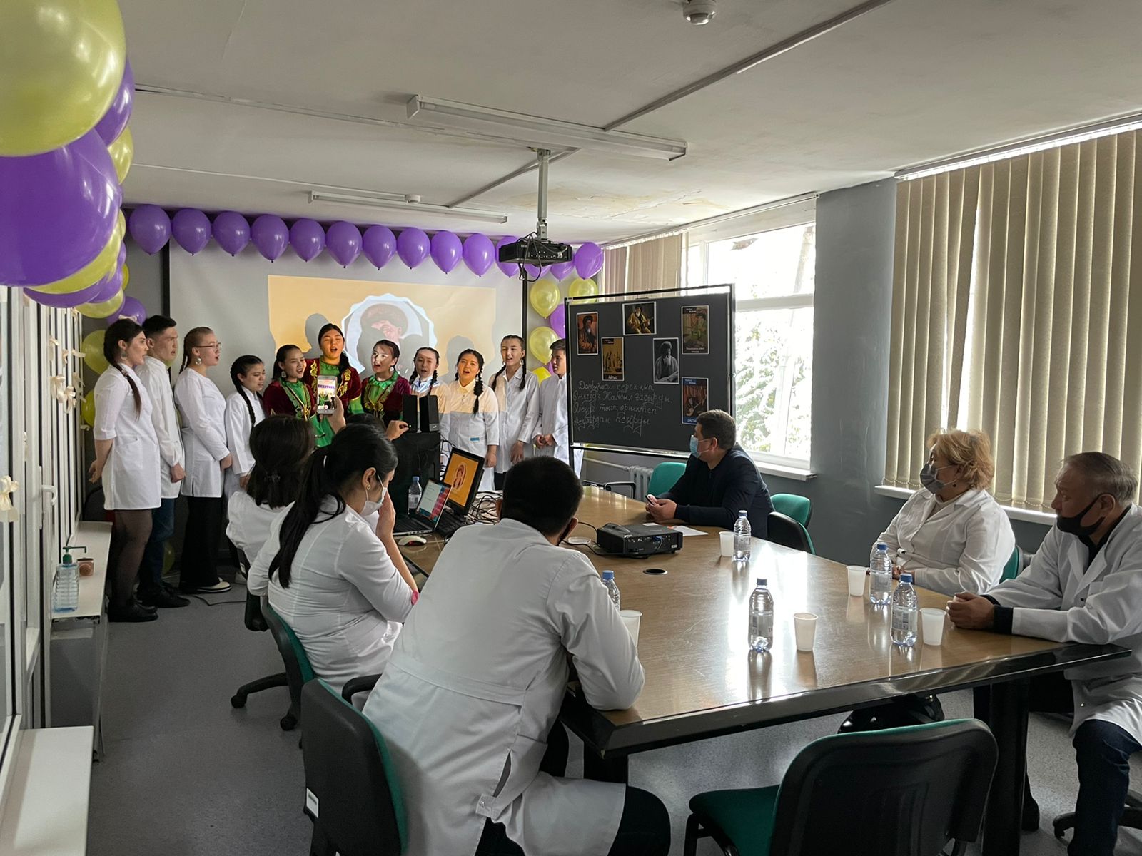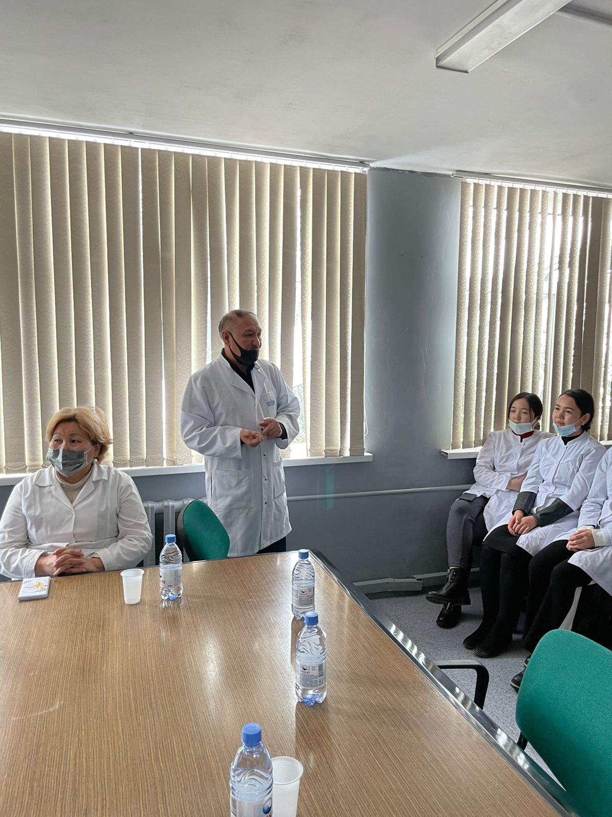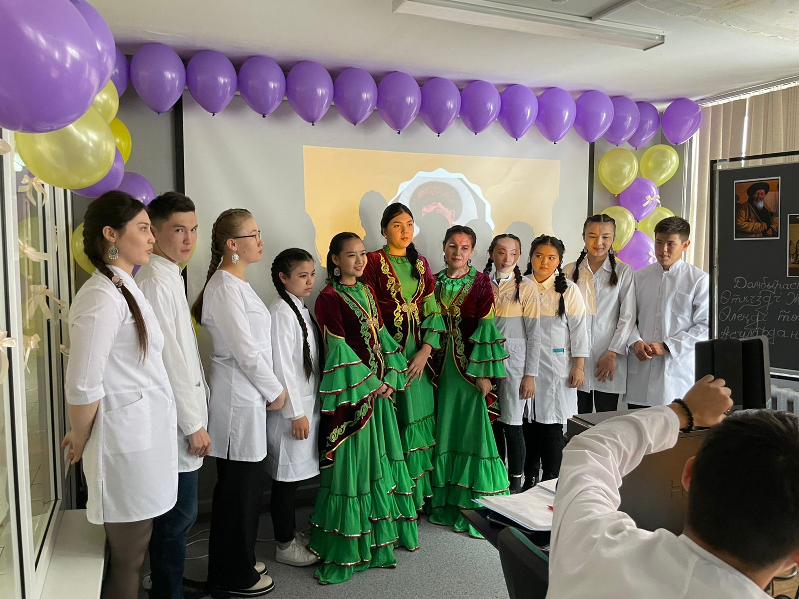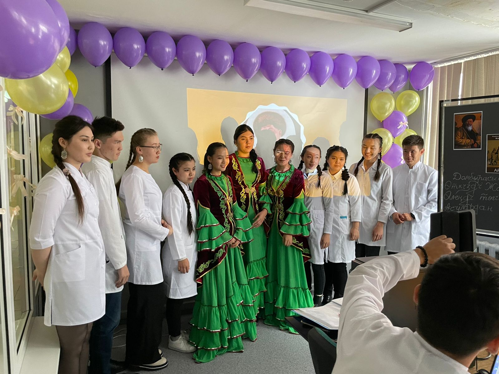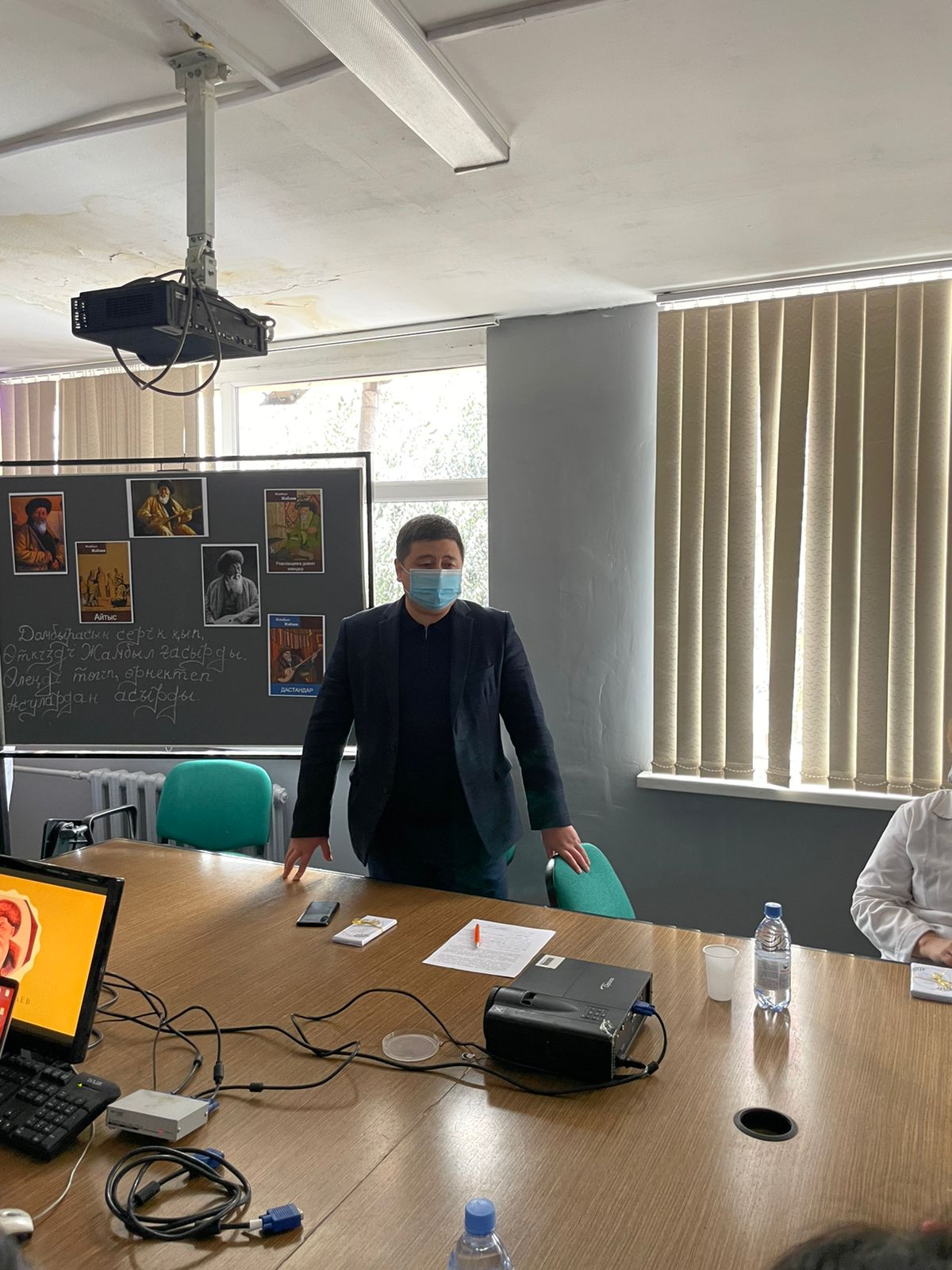 06.10.2021 күні №2 корпус ғимараты 105 аудиторияда Фармация мектебінің Фармация мамандығының 3 курс ФА19-002-1к тобының студенттері жыр алыбы – Жамбыл Жабаевтың 175 жылдығына арнап кафедрамыздың ардагері Жарымбетов Құрақбай Байсейтовичтің жетекшілігімен «Жүз жасаған – Жамбыл» атты ашық тәрбие сағатын өткізді.