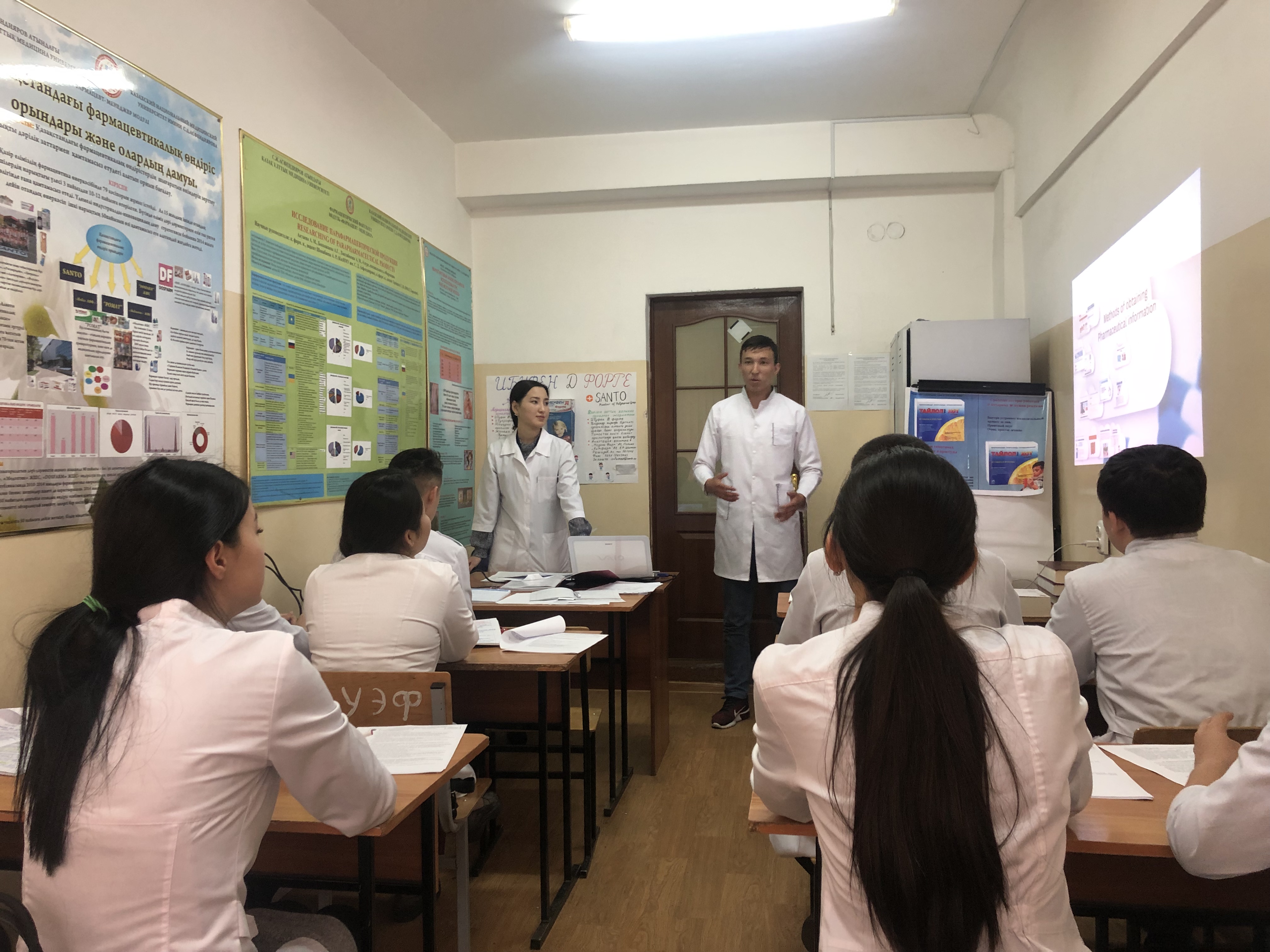 Фармацияның ұйымдастырылуы, басқарылуы және экономикасы және клиникалық фармация кафедрасында 16.04.2019 күні 224 аудиторияда кафедра мұғалімі Ә.М.Әбілқасымованың жетекшілігімен «Фармация» мамандығы бойынша 3 курс ФА 16 – 002 – 02 К топ студенттерімен «Фармацевтикалық қызметті ұйымдастыру» пәні бойынша ашық сабақ өткізілді. Практикалық сабақтың тақырыптары: «Фармацевтикалық ақпаратты ұйымдастыру. Денсаулық сақтау мамандары мен тұрғындарға ақпараттық қызмет көрсету. Дәріханалардың санитарлық ағарту жұмыстары. Дәрілік заттардың жарнамасы».